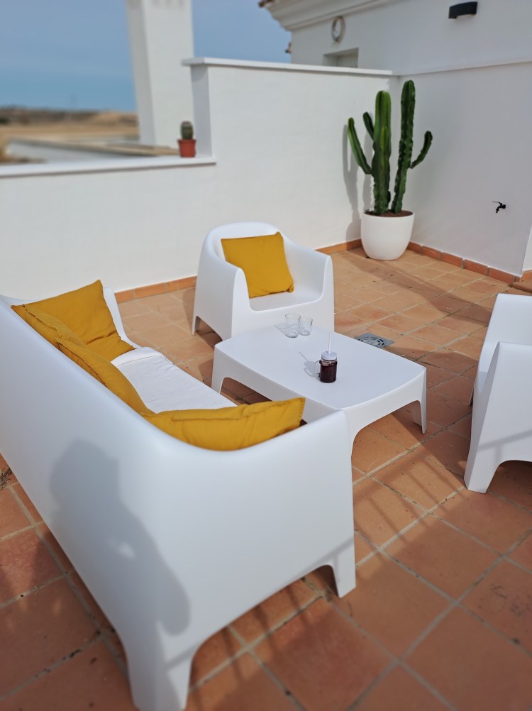 Het grote terras is zuidelijk gericht en op het terras aan de achterkant kan je genieten van de ondergaande Spaanse zon.